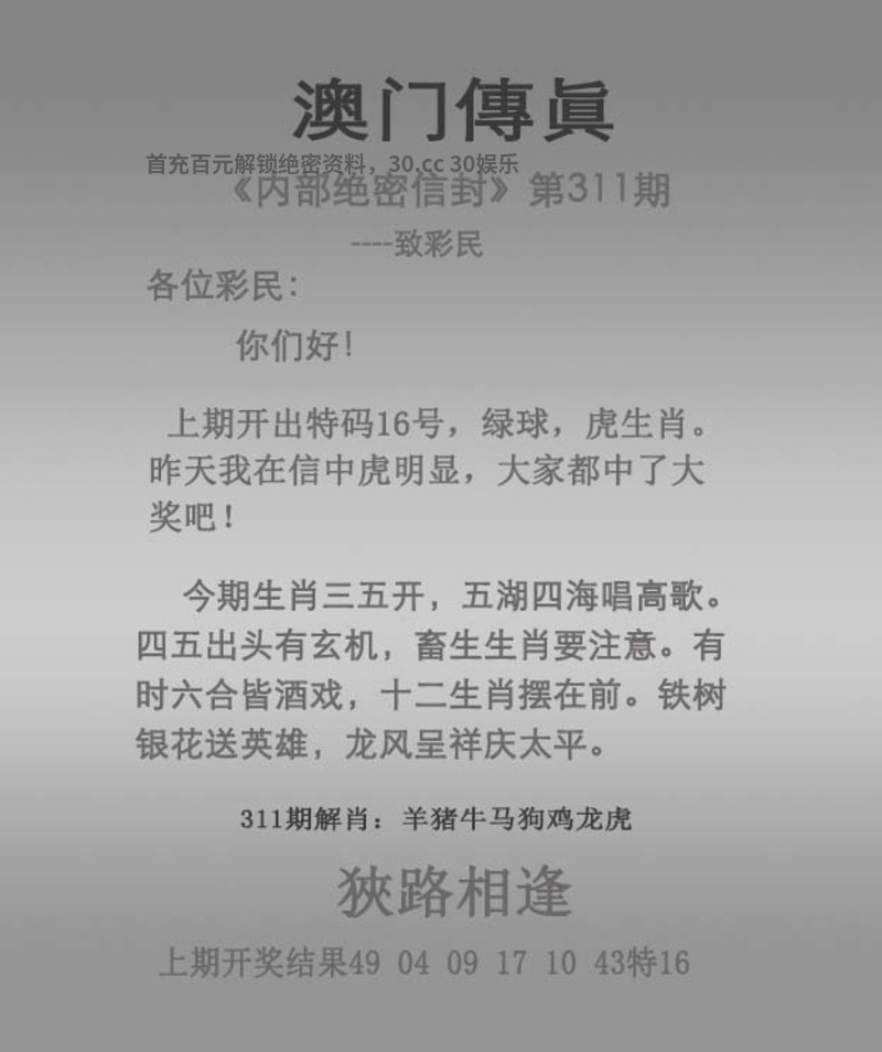 315期:〖复式连肖〗〖蛇虎马兔牛猴〗